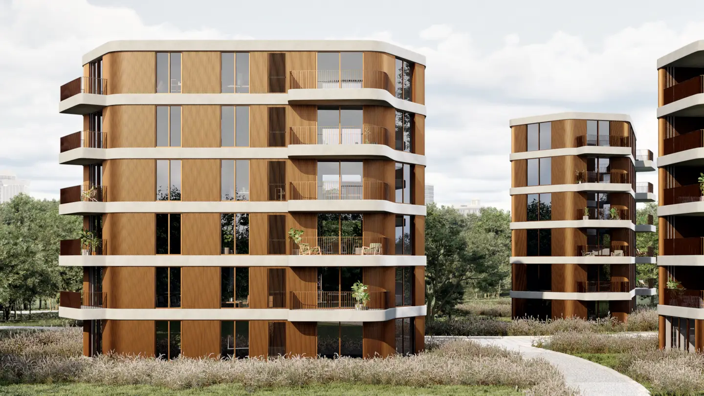 Imagine a façade that not only protects, but also inspires. Linarte Cone lets you create a timeless and sustainable design with a unique façade rhythm and dynamics. This virtual apartment complex, nestled in green surroundings on the edge of the city, combines colour and shape to create inviting architecture. Distinctive, resilient and endlessly creative.